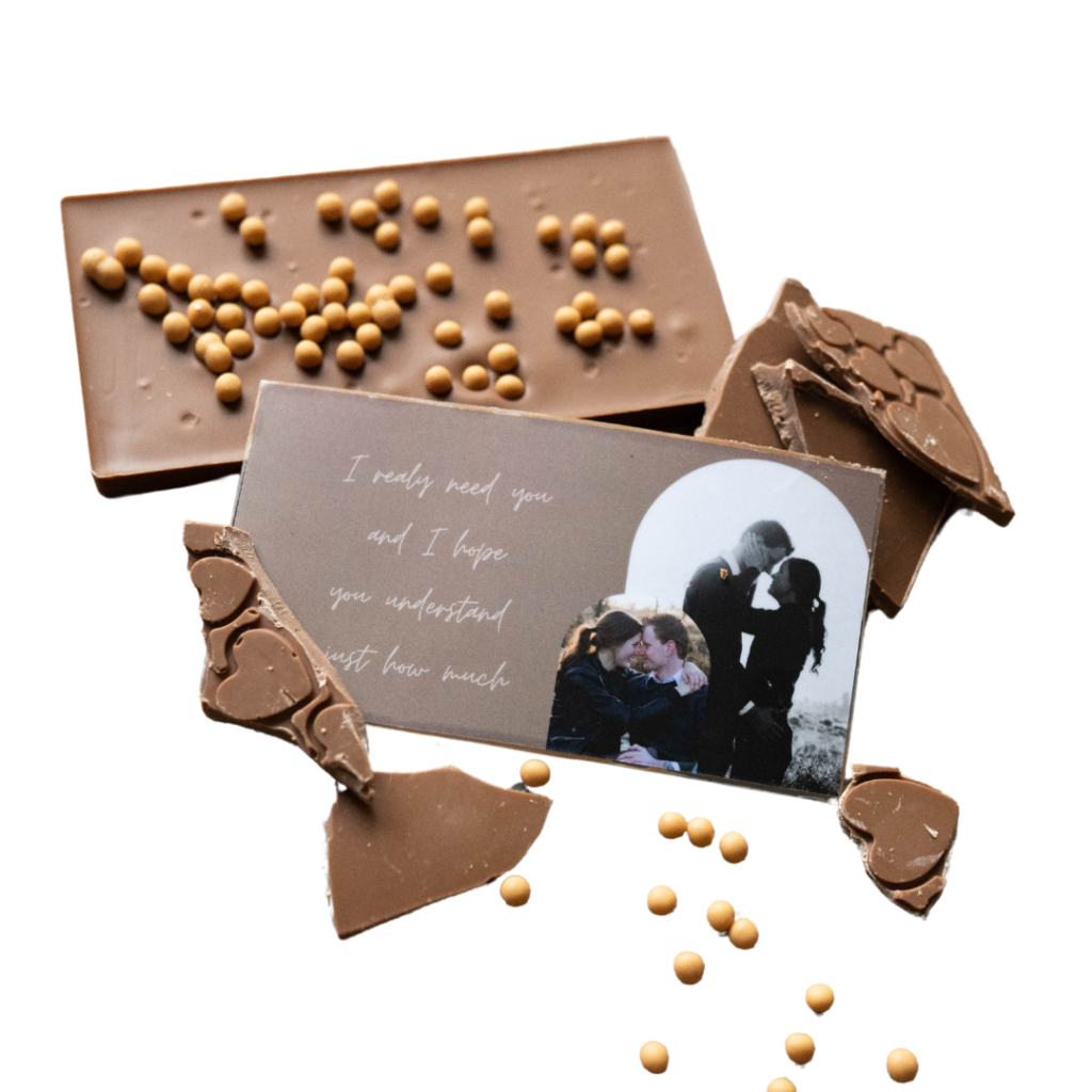 Dit reepje is een vrolijk reepje met een smakelijke topping. Maar het is pas écht een feestje als het gebroken wordt. Een verstopte boodschap met lieve groet, een aanmoediging, zwangerschapsaankondiging of een andere verrassing komt dan tevoorschijn. Wat mag er in jouw reepje?