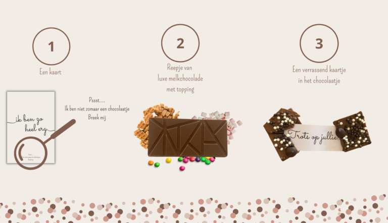 Een chocokaartje bestaat uit een kaart en een chocoladereepje.